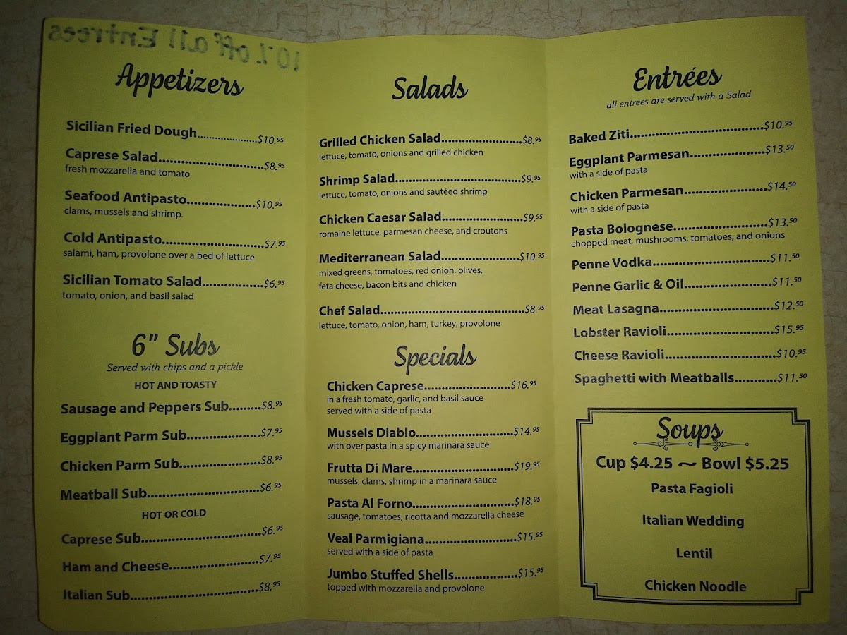 - Specials such as Frutta Di Mare and Jumbo Stuffed Shells highlight the restaurant's culinary expertise.